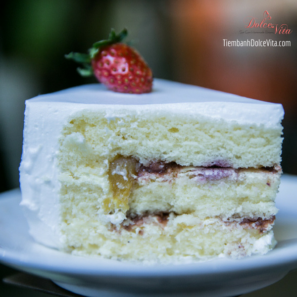 - Cốt bánh: 3 lớp bánh bông lan vani.