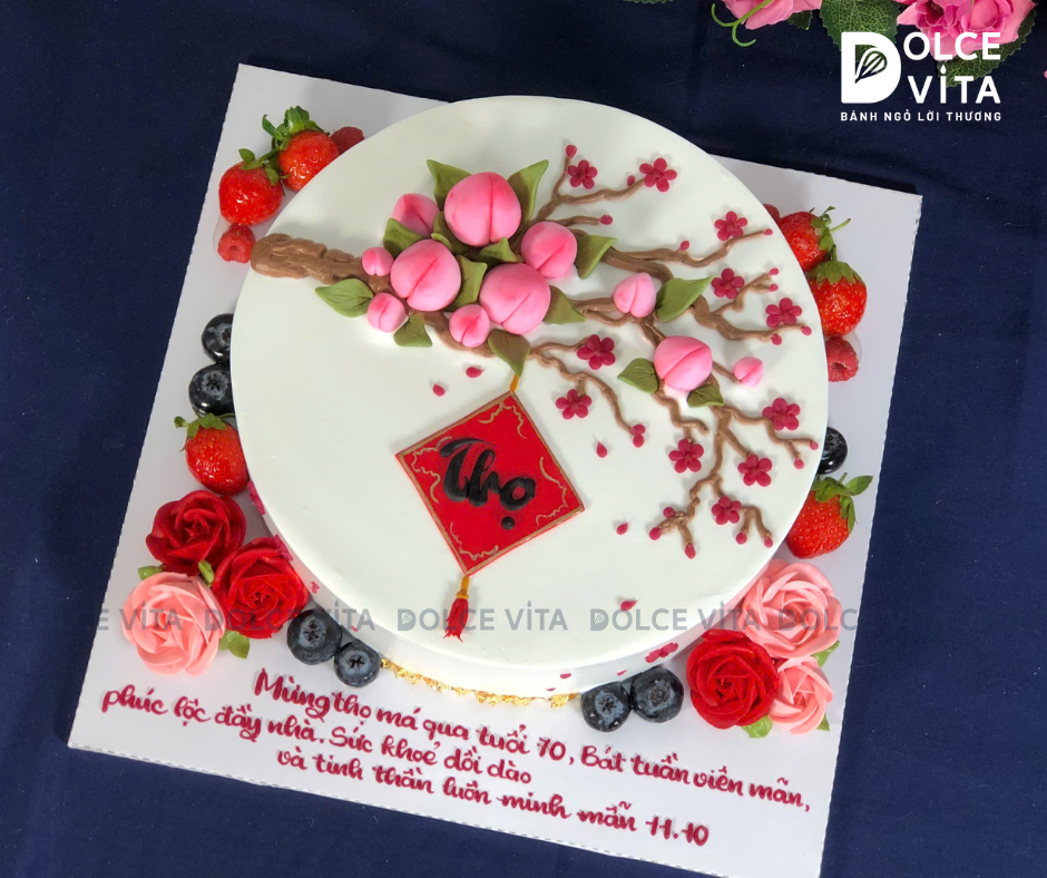 Mừng thọ là dịp đặc biệt để bày tỏ lòng biết ơn và chúc phúc cho ông bà, cha mẹ với những lời chúc sống lâu, mạnh khỏe. Dolce Vita mang đến mẫu bánh kem đậm chất truyền thống, được thiết kế dành riêng cho ngày ý nghĩa này: