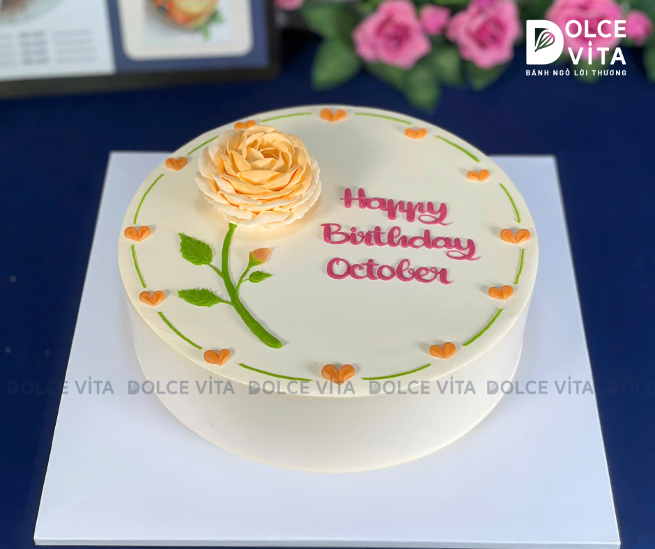 Trong ngôn ngữ của hoa, một bông hoa hồng đại diện cho tình yêu duy nhất, sự chân thành và lòng trân trọng vô điều kiện. Khi xuất hiện trên chiếc bánh kem, hình ảnh bông hồng đơn giản nhưng đầy ý nghĩa này sẽ giúp bạn truyền tải thông điệp: "Em là duy nhất", "Tình yêu của anh dành cho em mãi mãi bền chặt", "bạn rất đặc biệt"..