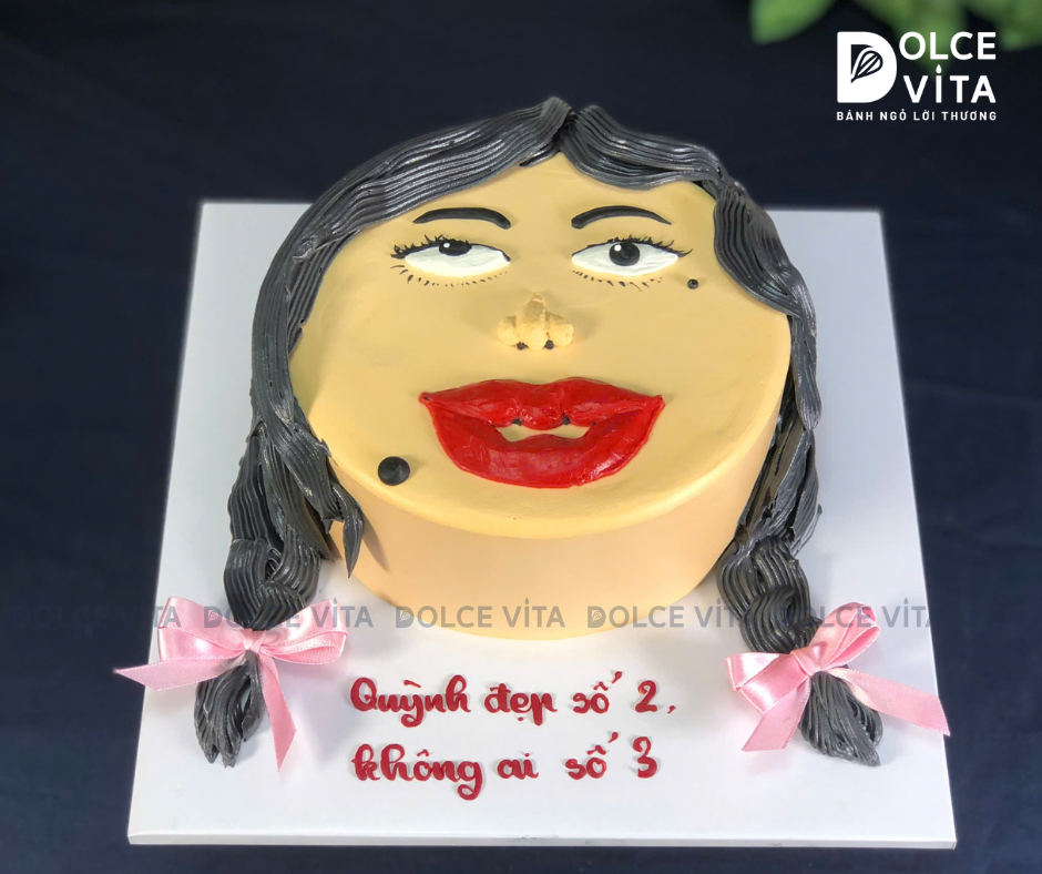 Vẽ mặt hài hước: Chiếc bánh được vẽ các nét mặt cực kỳ bựa với những đặc điểm như môi trề, mắt lồi, nốt ruồi bất ngờ và tóc tai làm mọi người bật cười, thậm chí là những chi tiết màu mè, sến súa.. Tất cả các chi tiết này có thể được vẽ theo nét mặt của người nhận, mang lại sự chân thật và vui nhộn.