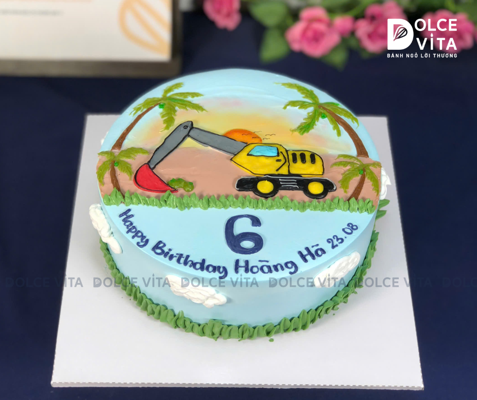 Chiếc bánh vẽ xe xúc vì thế luôn nằm trong danh sách “bé trai mê nhất”, nhất là ở độ tuổi mầm non, khi các bé bắt đầu gọi tên mọi thứ chuyển động quanh mình.