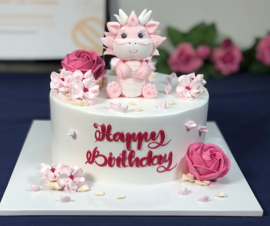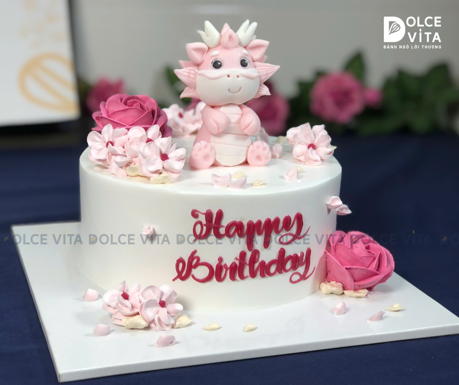Rồng là hình ảnh quen thuộc, gợi lên sức mạnh, may mắn và sự tốt lành. Chiếc bánh này được làm dành riêng cho các bé sinh năm Rồng hoặc yêu thích hình ảnh con vật huyền thoại này. Từng chi tiết như vảy rồng, đôi mắt tinh nghịch hay chiếc đuôi uốn lượn đều được thợ bánh vẽ tay hoặc tạo hình thủ công, mang đến một chiếc bánh vừa ngon vừa bắt mắt. Với màu sắc tươi sáng và nét trang trí ngộ nghĩnh, chiếc bánh này hy vọng sẽ làm bé vui thích và góp phần làm bữa tiệc sinh nhật thêm phần đáng nhớ, chào đón ngày đặc biệt của bé.