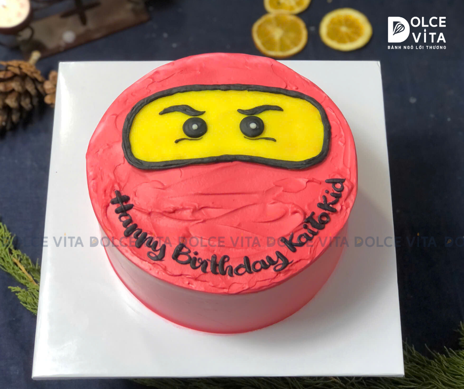 Mẫu bánh này đặc biệt phù hợp với các bé trai mê LEGO, Ninjago hay những nhân vật ninja dũng cảm. Ngoài màu đỏ đặc trưng, bạn có thể đặt các màu khác theo sở thích hoặc phối hợp chi tiết trang trí thêm để tạo sự sinh động.