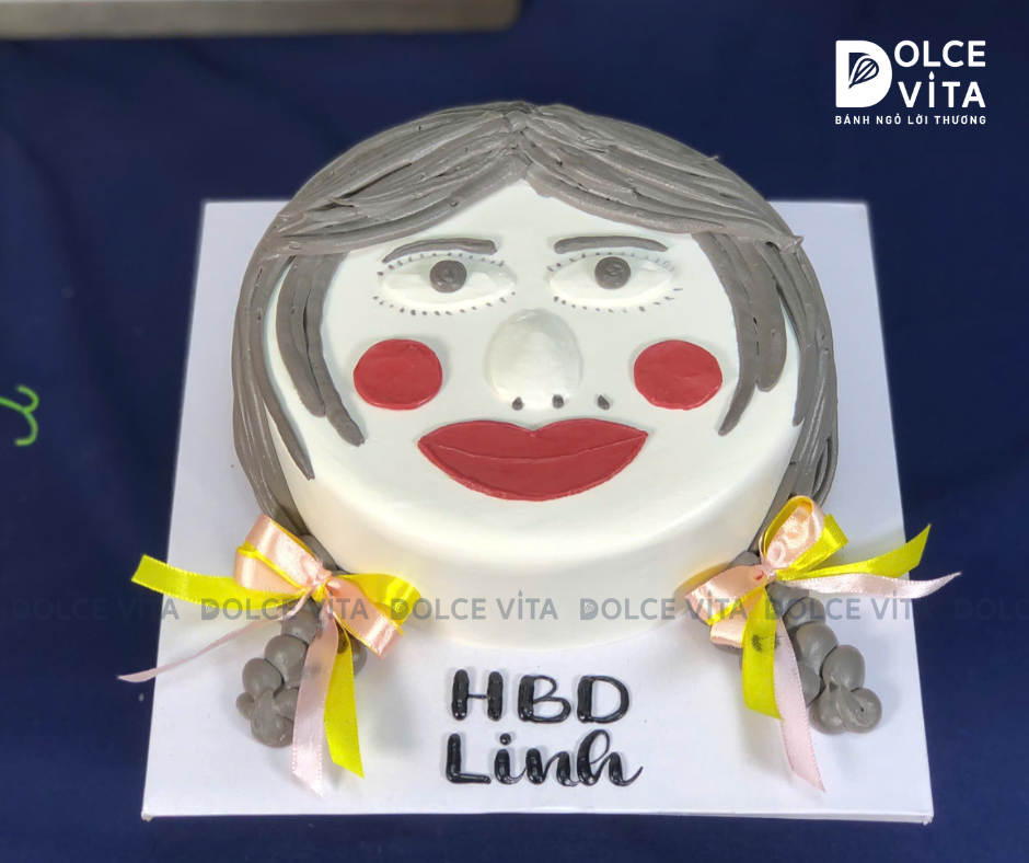 Bánh được vẽ lại khuôn mặt người nhận, nhưng theo phong cách thậm xưng, chọc cười: