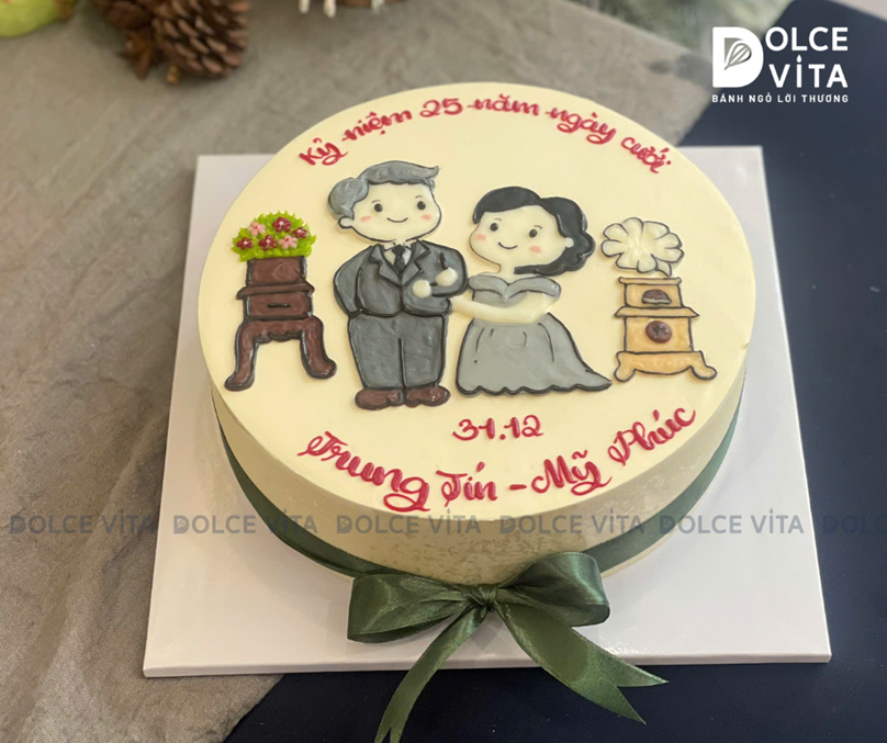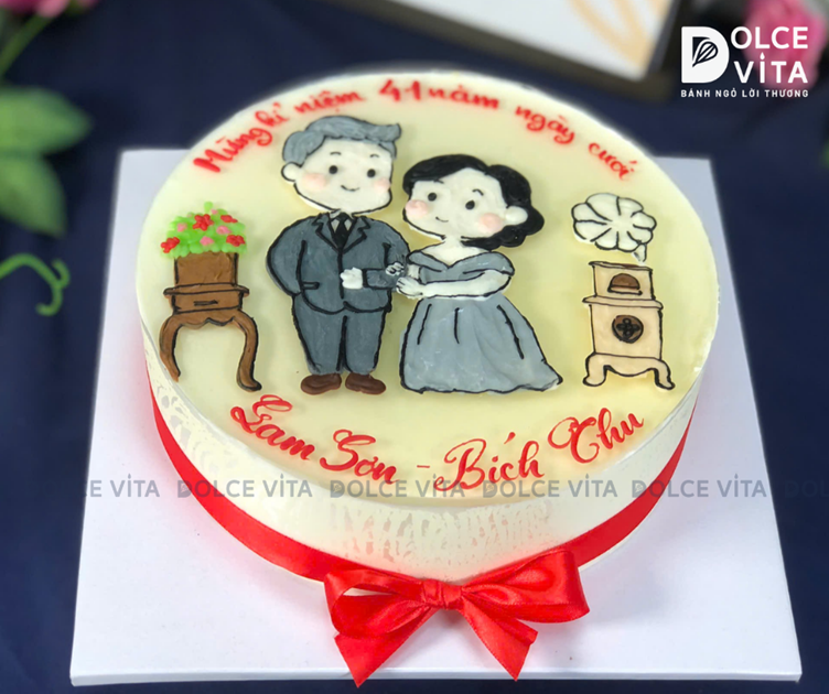 Một chiếc bánh kem có thể thay lời yêu thương, và với hình vẽ cô dâu chú rể, chiếc bánh trở thành món quà đặc biệt cho những dịp quan trọng gắn liền với tình yêu và gia đình.