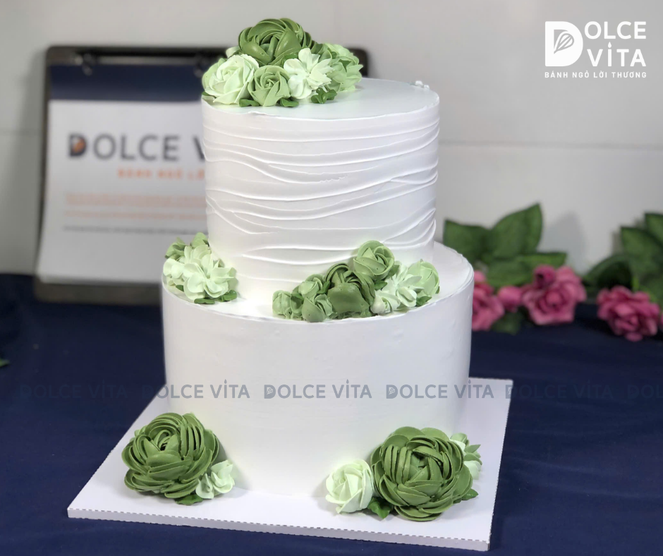 [1919] (250) Bánh tầng trang trí hoa bằng kem tone xanh lá - phù hợp cho cưới hỏi, sinh nhật mẹ