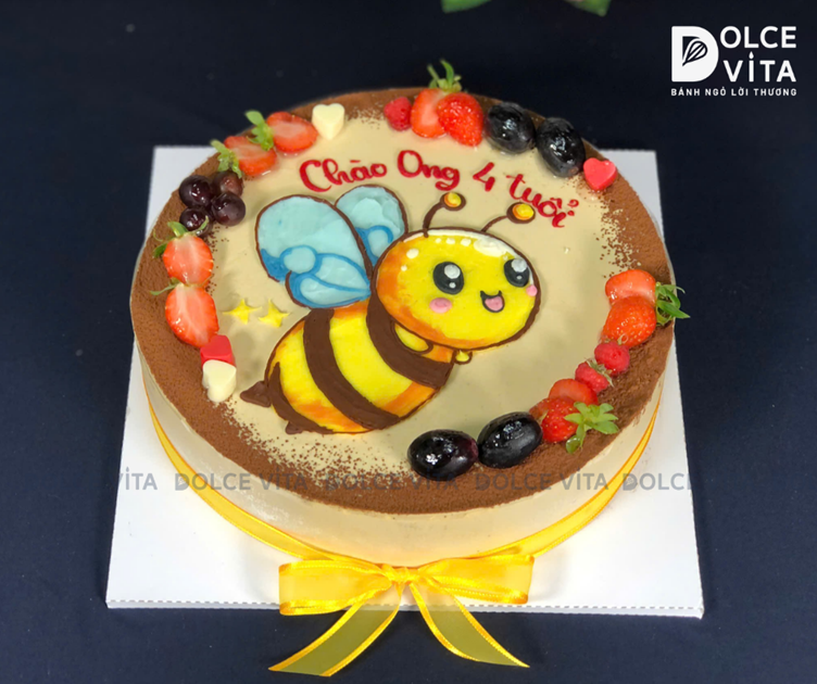 Một chú ong nhỏ nhắn, đôi cánh trong veo, thân mình vàng đen nổi bật… nay xuất hiện trên chiếc bánh kem với phong cách tươi sáng và đáng yêu. Hình vẽ chú ong không chỉ dễ thương, mà còn mang đến năng lượng tích cực, vui nhộn cho bữa tiệc.