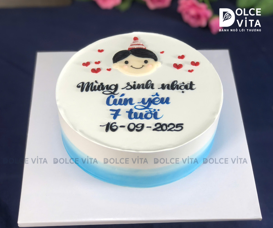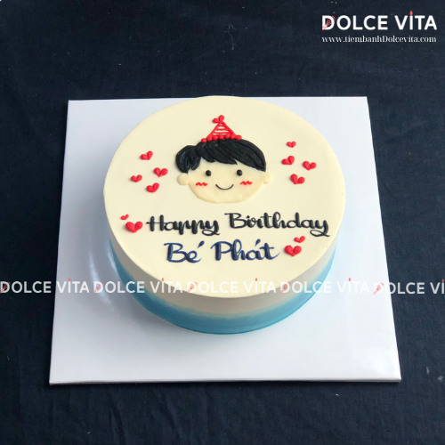 Phủ kem màu tươi sáng, dễ thương – thường là các gam màu pastel như xanh, vàng, trắng… – và có thể thêm chi tiết trang trí như bong bóng, nón sinh nhật, ngôi sao, hoặc món đồ chơi mà bé yêu thích.