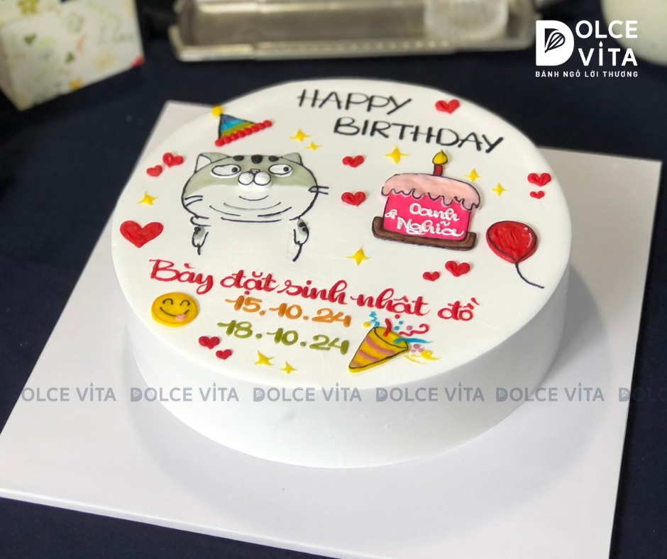 ✅ Tùy chỉnh theo yêu cầu: Bạn có thể yêu cầu Dolce Vita thay đổi trang trí để thể hiện ý tưởng và dấu ấn cá nhân của mình. Mỗi chiếc bánh thực hiện thủ công nên là một tác phẩm nghệ thuật riêng, không trùng lặp.