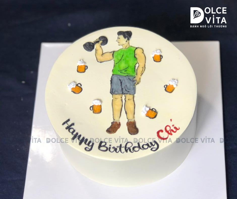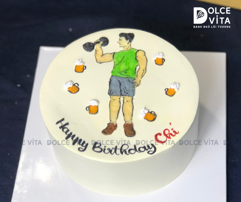 🎂 Bánh Kem Vẽ Hình Người Tập Tạ – Quà Tặng Cho Vận Động Viên & Người Yêu Thể Hình