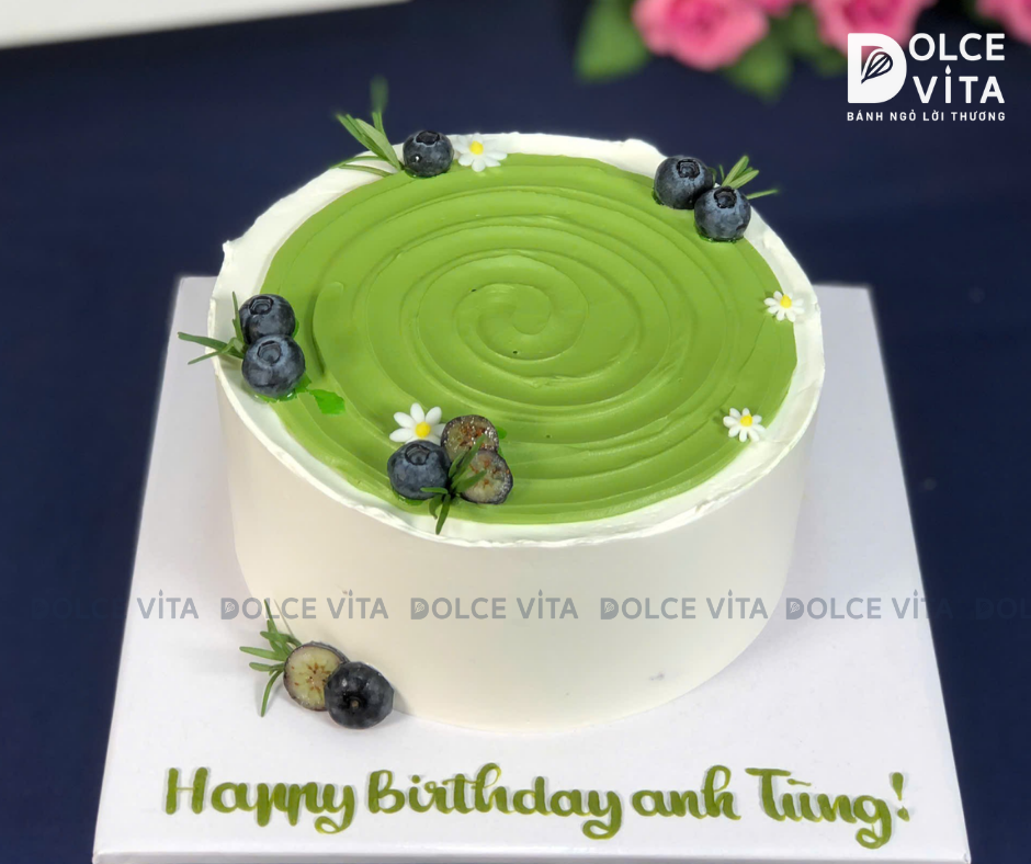 – Bánh có thể phủ kem trơn màu xanh lá, hoặc phối xanh bơ dịu nhẹ.