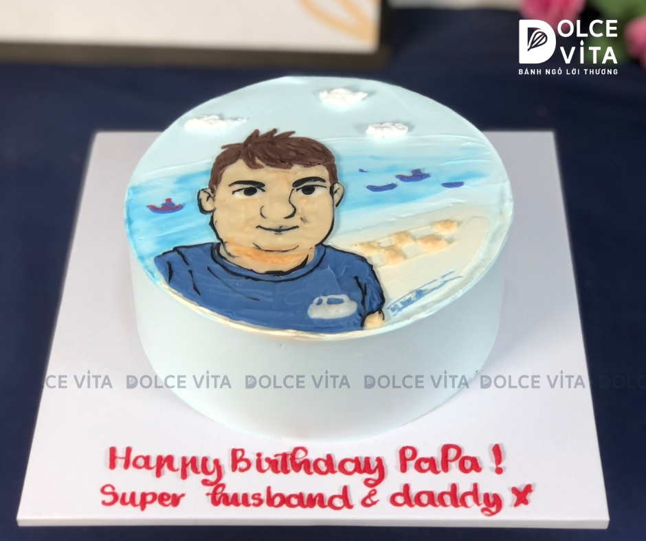 Vẽ tay hình chibi theo người thật: Mỗi chiếc bánh là một phiên bản độc nhất, tái hiện nét đặc trưng của người nhận dưới dạng hoạt hình chibi gần gũi.