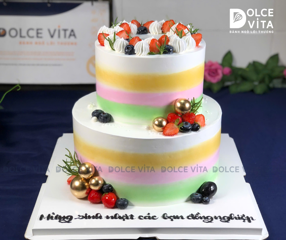 Bánh doanh nghiệp: Bánh kem tầng cũng là món quà phù hợp cho sự kiện công ty, thể hiện sự chuyên nghiệp và sự chú ý đến chi tiết trong các sự kiện quan trọng.