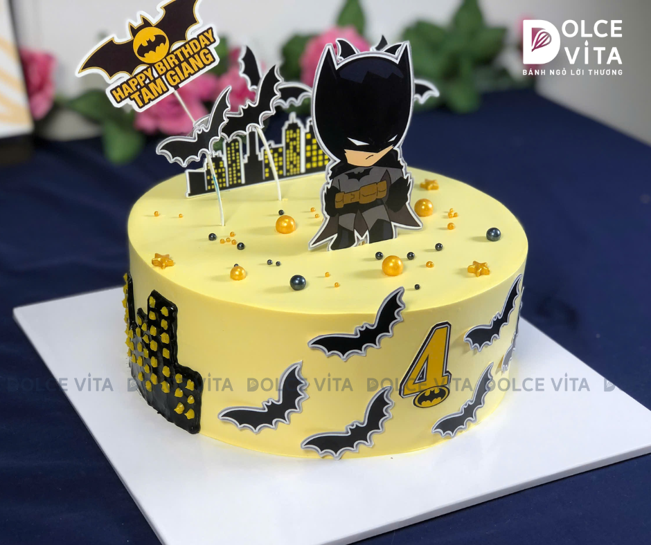 Nếu bạn (hoặc người thân) là fan cứng của vũ trụ siêu anh hùng, thì chiếc bánh vẽ hình Batman – Người Dơi chắc chắn sẽ khiến buổi tiệc trở nên cực kỳ cool ngầu và đáng nhớ!