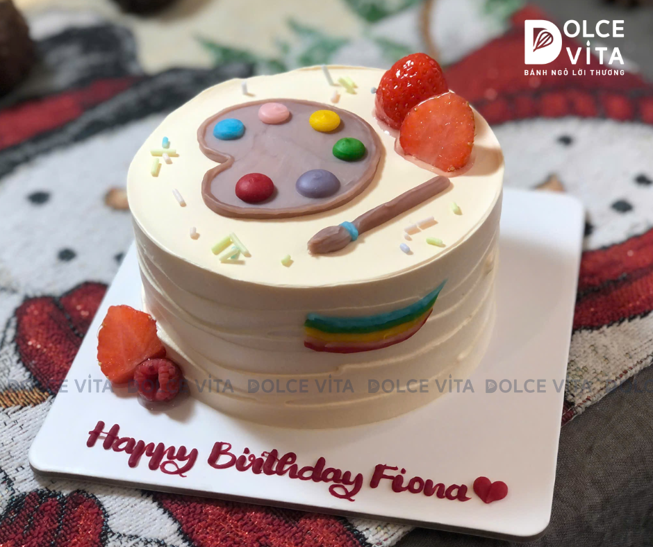 Chiếc bánh vẽ hình bảng pha màu và cọ vẽ gợi ngay đến thế giới của hội họa – nơi màu sắc, cảm xúc và sự sáng tạo gặp nhau. Đây là mẫu bánh mang tinh thần rất riêng, nhẹ nhàng nhưng đầy ý nghĩa, phù hợp để dành tặng những ai yêu vẽ tranh, theo đuổi con đường mỹ thuật hoặc đơn giản là trân trọng cái đẹp.