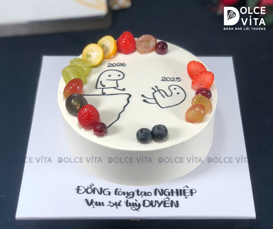 Cuối năm không chỉ là tổng kết, mà còn là lúc nhìn lại một chặng đường đã qua. Chiếc bánh vẽ hình mô phỏng “năm mới sút năm cũ” mang tinh thần vui vẻ, hài hước nhưng rất tích cực – như một cách nói rằng: Cảm ơn năm cũ, và sẵn sàng cho những điều tốt đẹp hơn phía trước.
