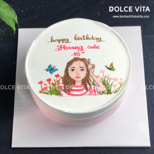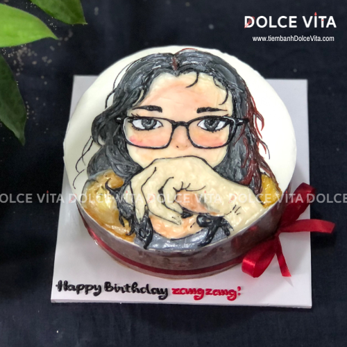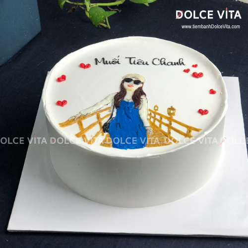 ✨ Tại Dolce Vita, bạn có thể đặt bánh kem vẽ chân dung nữ, phác thảo từ hình chụp thật – mô phỏng lại thần thái, mái tóc, trang phục của người được tặng, kết hợp với tone màu nhẹ nhàng, tinh tế để giữ trọn nét dịu dàng, nữ tính.