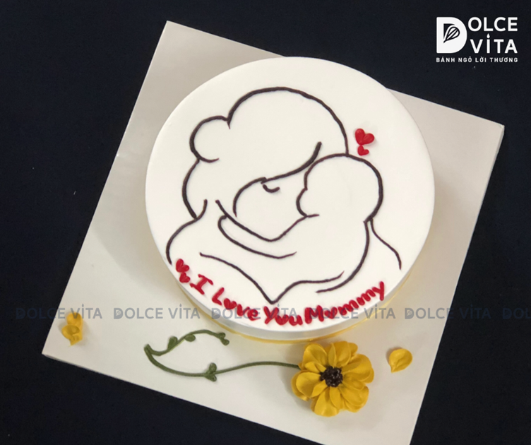 Một chiếc bánh không chỉ để ăn, mà còn để lưu giữ khoảnh khắc thiêng liêng. Với hình ảnh mẹ bồng con được phác thảo trên mặt bánh, đây là món quà gói trọn tình cảm gia đình – giản dị nhưng sâu lắng.