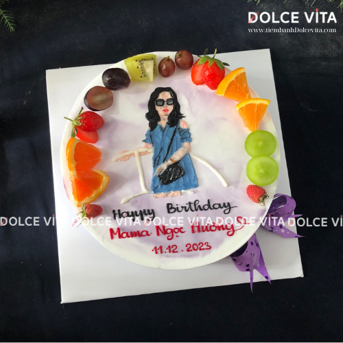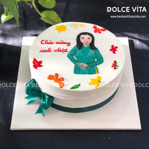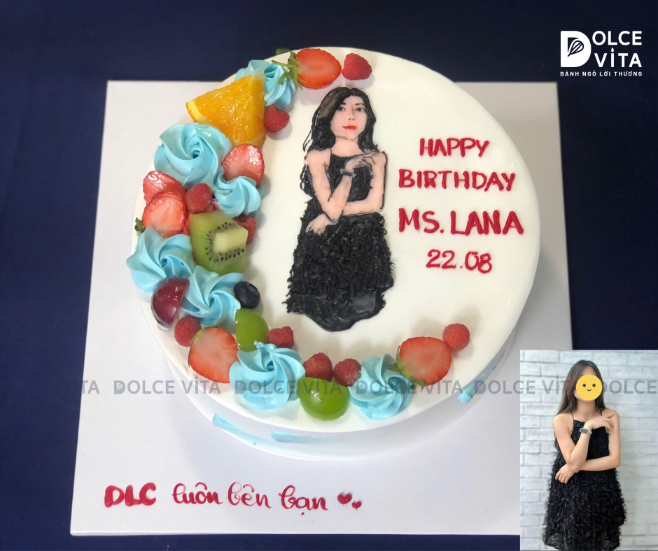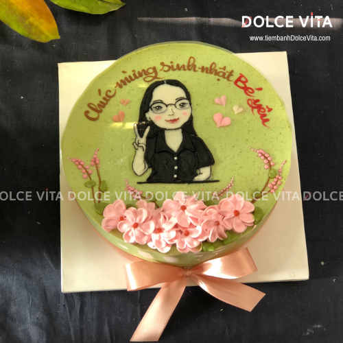 ✨ Tại Dolce Vita, bạn có thể đặt bánh kem vẽ chân dung nữ, phác thảo từ hình chụp thật – mô phỏng lại thần thái, mái tóc, trang phục của người được tặng, kết hợp với tone màu nhẹ nhàng, tinh tế để giữ trọn nét dịu dàng, nữ tính.