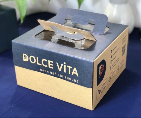 Hộp đựng bánh là hộp kraft không cán màng. Dù hơi bất tiện trong bảo quản nhưng ít ra nó thân thiện hơn với môi trường. (Phần bìa nhựa để nhìn bánh thì đúng là chưa khắc phục được, hic.)