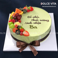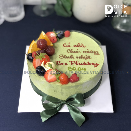 - Bánh làm từ bông lan trà xanh; lớp kem mousse gồm phô mai, sữa chua, bột trà xanh, kem tươi whipping.